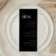 A modern and bold black and white wedding menu card, designed with modern typography and script lettering. Personalise this item with all of your wedding menu items.