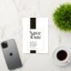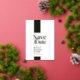 A beautiful strong serif gold foil font displays the future newlyweds' names and the date of the wedding, with wordings in a contrasting all capitals clean font within a modern geometrical frame in this minimalist typographical style wedding Save The Date. The reverse of the card features a solid dark grey colour and may be customised with the bride and groom's monograms in a beautiful white font.