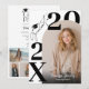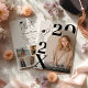 Confident, minimal, and fashion-forward — this modern graduation party design makes a statement with oversized typography and a clean editorial layout. The dramatic stacked year numerals create instant impact, while the soft arched photo frame adds warmth and balance. The reverse side features a structured party layout with a curated photo collage, blending bold serif headlines with elegant script for a polished yet contemporary look. It feels elevated and stylish — perfect for seniors who love modern branding, neutral tones, and a magazine-inspired aesthetic.