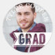 A modern design on a round sticker makes a personal statement on your graduation announcement and party invitations. Personalise the arched text and "GRAD" banner, just add your photo behind for a great envelope seal, party favour sticker or DIY cupcake pick.