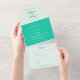 Modern Bold Emerald Mint Green Retro Vibes Wedding All In One Invitation