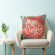 This beautiful Christmas throw pillow features hand drawn floral elements in various shades of green, mint, teal, off-white. Included are pine, flowers, sprigs, leaves, berries along with modern hand lettered in off-white, reading, "Merry Christmas." The background colour is a Christmas traditional, classical red. The back of the card has another place for a photo. Original Artwork by Caroline Bonne Müller