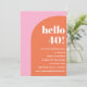 This birthday invitation features a bold pink and orange colorblock design paired with modern serif typography for a confident, celebratory look. The large “Hello 40” headline feels fun and stylish, while the clean layout keeps all event details easy to read. Perfect for a milestone birthday that feels modern, upbeat, and thoughtfully designed. Personalize the name, date, time, and location to create an invitation that feels polished and memorable.