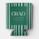 Modern Bold Graduation Party Striped Green Can Cooler. A minimalistic and modern, dark forest green can cooler, designed with large bold typography. Personalize with graduate's name, year of graduation, and high school, college or university name.