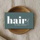 Modern fully customisable business card template with bold fonts, green background and faux silver scissors icon. Perfect for hair salon, hairdressers.