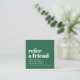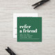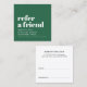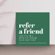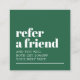 Modern fully customizable referral card template for beauty related professionals. Cool bold design with green background and white fonts.