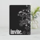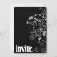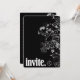 Contemporary white floral border on black with bold lettering for invitation.