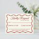 A simple and elegant calligraphy colourful retro wedding rsvp card. That has a vintage modern stylish milky ivory background with deep red script and hand drawn whimsical wavy frame. Minimalist and chic with handwritten lettering . It is all editable by clicking on the personalise button.