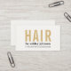 Modern fully customizable business card template with bold hair text, pastel background (warm white), golden yellow fonts. Perfect for beauty salon, hairstylist, hairdresser, barber.