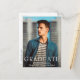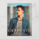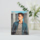 Modern boy graduation announcement postcard featuring a simple and masculine design with "Graduate" in large bold typography along with the graduate's name, year and school name over your favourite full bleed vertical photo. The backside has your personal message / party invitation and return address in a navy blue over a white background.