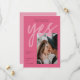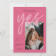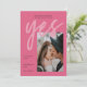 A modern Save the Date Card with a fresh and bold colour palettes of pink shades, featuring big bold Calligraphy Script for Yes and your image of choice. All colours of this Photo Save the Date Template can be changed! A unique but affordable Save the Date Invitation for modern couples.