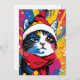 Send festive greetings in style with this eye-catching pop art Christmas cat card. Featuring a sleek cat in a Santa hat and scarf, set against a bright and dynamic background of vibrant yellows, blues, and pinks, this card brings an artistic flair to your holiday celebrations. Ideal for cat lovers and those who appreciate unique designs, this card includes a customisable text template on the back, allowing you to personalise your message for friends and family this Christmas.