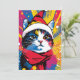 Modern Bold Pop Art Christmas Cat Custom Text Holiday Card