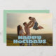 MODERN Bold Retro Blue Typography Photo HAPPY Holiday Card