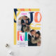 Modern bold script 2 photos arch Joyful Christmas in bright bold orange, pink, teal and navy blue with a cool brush script. Add 2 of your favourite photos.