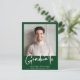 Modern Bold Script Photo Green Graduation Announcement Postcard
