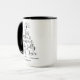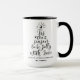 Celebrate the magical and festive holiday season with our custom holiday mugs. Our modern holiday design features our holiday Christmas tree graphic designed with a festive and stylish script handwriting typography "Tis The Season To Be Jolly, With Love" in black that creates the impression and design of a Christmas tree. A star is placed at the top of the tree with lines to represent the star shinning brightly.The year, family member's names and last name are beautifully incorporated into the holiday tree design to create the tree shape. The all white background and the black tree typography creates a modern and minimalistic holiday card design. All artwork contained in this typography Christmas tree holiday mug are hand-drawn original artwork by Moodthology. You can customise the text size, text colour, font and layout for your own personal design preference