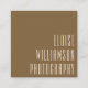 A sleek and professional square business card designed for photographers and creative entrepreneurs. Featuring a rich mocha brown background with modern elongated typography in white, this design is both bold and refined. The back provides essential contact details in a clean and structured layout. Ideal for portrait photographers, wedding photographers, and visual artists who want a contemporary and stylish brand identity.