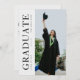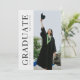 Make a striking impression with this modern graduation party invitation featuring bold vertical typography and clean editorial layout. The front side highlights a full-length graduate photo with “GRADUATE” printed vertically in classic serif font—perfect for a sleek, timeless look. The back design plays with font hierarchy and creative layout, presenting the party details with a stylish twist. A perfect choice for graduates who love clean design with a strong personality.