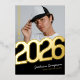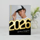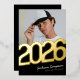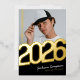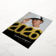 Modern graduation invitations featuring the year '2025' in real gold foil, a photo of the grad, the graduates name, high school, and a party invite template that is easy to personalise. You can adjust the wording on the back of the grad invite to make this into a graduation announcement.