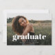 Make a statement with this Modern Bold Typography Three Photo Graduation Announcement. Featuring striking lowercase typography and a clean, contemporary layout, this design beautifully highlights three favourite senior portraits. The front showcases a bold “graduate” headline, while the back offers space for additional photos and personalised details. Perfect for sharing your milestone with family and friends in a stylish, modern way.