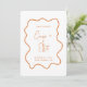 A modern and trendy wedding save the date invitation design in a bold burnt orange with a hand drawn wavy frame on the front around your custom text and names and around your photo on the back of the card. All colours of this design can be changed in the design tool.