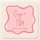 Modern Bold Wavy Frame Magenta Cheers Wedding Square Paper Coaster