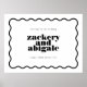 Modern Bold Wavy Line Framed Black White Wedding Poster
