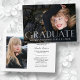 Modern and bold 2 Photo graduation announcement cards, featuring design elements of white transparent, modern fashion style text with minimalist typography. The graduate's photo on the front of the card highlights the entire surface with a second photo on the back. The back of the card also offers personalised text spaces for information about your graduation and future journey. Perfect for the high school, college and university grad student seniors.