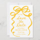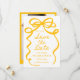 Brighten your guests' day with this modern yellow bow wedding save the date card. Designed with a bold, hand-drawn yellow bow that frames the layout against a white background, this cheerful and elegant design brings a joyful touch to your wedding announcement. “Save the Date” is featured in a handwritten yellow script, with space to personalise your names, wedding date, and location. The back showcases a vertical engagement photo along with your wedding website so guests can easily access more details. Ideal for spring, summer, or destination weddings, this vibrant design sets a warm and happy tone for your celebration.