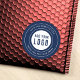 Modern thank you sticker featuring a round double border for your web address and thank yous and in the centre you can add your logo all against a background colour that is editable (click customise to change). This sticker is ideal as a finishing touch to your product packaging.