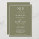Modern boho green lined border minimalist wedding invitations templates with initials at the top for you to customise.
