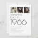 Modern Born in 1966 4 Photos 60th Birthday Party Invite. Simple elegance. Easily personalise the text to your own requirements and replace the sample images with 4 of your own photos of different ages.