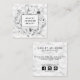 This modern botanical black and white square business card features a beautiful hand drawn black floral design over a white faux carrera marble background, and overlaid with a black bordered white rectangle featuring your name and title, or occupation. The back of the card features the same white marble background, and you may personalise all your contact information easily. Includes social media icons and a field for your username. Copyright Anastasia Surridge Designs, all rights reserved.
