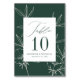 Modern Botanical Floral Dark Green & Cream Wedding Table Number