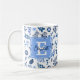 Modern Botanical Folk Art Blue White Monogram Name Coffee Mug