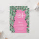 A simple modern 21st birthday invitation featuring elegant calligraphy script typography and minimalist design in pink colour with botanical tropical greenery.