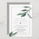 A stunning wedding invitation featuring detailed green watercolor leaves on a white background and dark grey modern font and rectangle frame. The backing is in solid grey but this can be removed.
