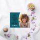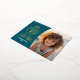 A modern look for a holiday photo card. A simple arch borders the photo with a teal colour background and foil Holiday greeting. Botanical leaves are included on the back.