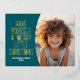 Modern Botanical Merry Christmas Photo - Teal Foil Holiday Postcard