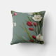 Bring a touch of serene, contemporary nature into your home with this exquisite botanical throw pillow. Featuring a sophisticated and minimalist composition, this design showcases delicate white spring blossoms and vibrant crimson red buds gracefully arching across a trendy sage green background.