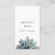 QR code Modern Botanical greenery business card, with a succulent design on a white and light blue background. With customisable black and white text, you can add your own information. You add your website to the QR code field for your customers to scan. A trendy way to promote your design business with a floral style.