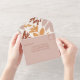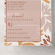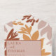 Get inspired by this striking modern design. Featuring abstracted botanical elements in terracotta, soft pink and mustard colours. This invitation is a great way to send all your details in one easy to use format. All you need to do is change the text to your personal requirements, then you guest can detach the rsvp information and send back. So easy and convenient.
