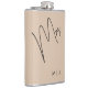 The flask itself is fine. It’s a cheap flask, obviously bought in bulk, however am prepared to overlook that. Given that it is a personalized item, I would have liked to have seen gift boxing instead of the generic packaging. Terrible printing, and/or quality. It’s a cheap, tacky vinyl. It is not cut straight and is also applied in a way that it is overhanging the bottom, causing the glue to catch on items and it will eventually roll and tear, damaging the wrap.