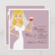 A pretty blue-eyed blonde bride toasts family and friends with a glass of wine in this modern take on a Bridal Shower invitation. Popular lilac purple background. Perfect for a wine-themed shower or for a wine-loving bride. Also available: