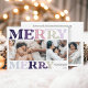 Get ready to sleigh the holiday card game with our Modern Simple 4 Photos Christmas Greeting!Featuring a hand lettered script saying merry in dark purple hues christmas colours . All the colours are editable.
