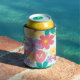 Modern Bright Cheerful Flower Pattern Monogrammed Can Cooler