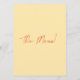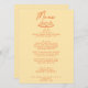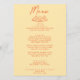 A colourful retro funky modern black and white wedding dinner menu. Which features chic template design of bright yellow background and orange hand written typography. With Hand drawn cupcakes mini table . A Perfect and matching with the whole suite.