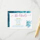 Add a vibrant touch to your wedding stationery with this ocean-inspired enclosure card. Featuring a stunning floral design in blue, green, and fuchsia pink-purple on the front, this card exudes a cheerful and tropical vibe. All text fields are fully customisable, allowing you to tailor it to your wedding details. The back showcases a beautiful blue ocean wave photo, which you can keep or replace with a picture of the couple, a QR code linking to your wedding website, or any other meaningful image.