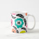 Modern Bright Flowers and Black Leaf Monogram Coffee Mug